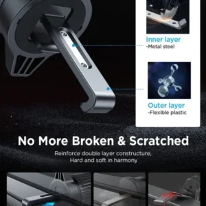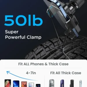 - [Single-handed Operation]With quick-release button and adjustable clamp arms, very easy to insert and remove your phone with a single hand. Provide you with safer driving whether you are talking, navigating, listening to music or charging.