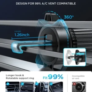 - [360 Degree Adjustable View Angle]The 360-degree rotatable head will provide you with the best viewing angle, so you could see the phone screen clearly and keep secure driving rather than limited by view angle or unwieldy phone holder for car.